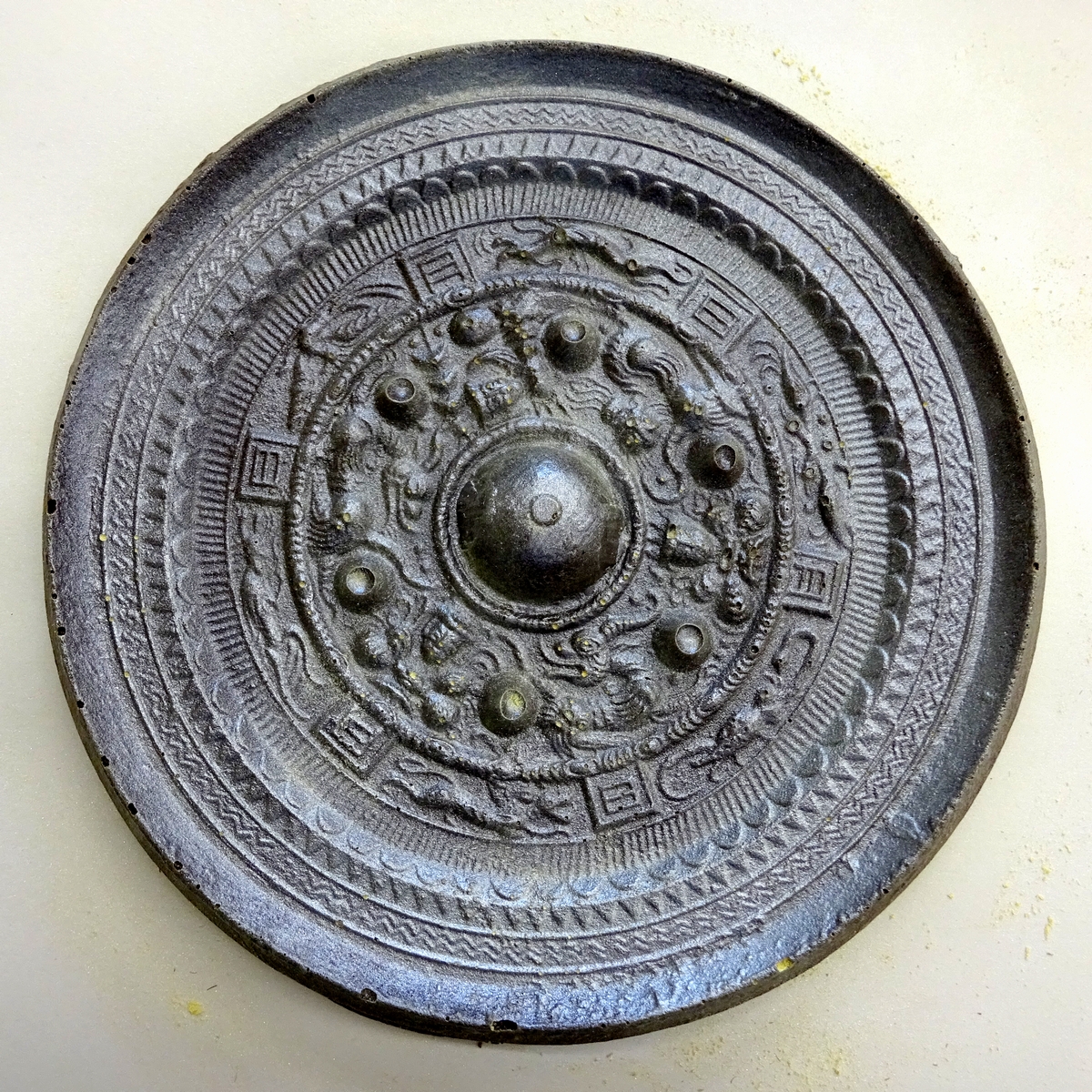 青銅鏡は、弥生時代から古墳時代にかけて作られた青銅製の鏡で、祭祀や儀式に用いられたほか、権力者の威信を示す重要な品として古墳にも副葬されました。山梨県内でも、甲斐銚子塚古墳をはじめとする遺跡から、精緻な文様が施された青銅鏡が数多く出土しています。