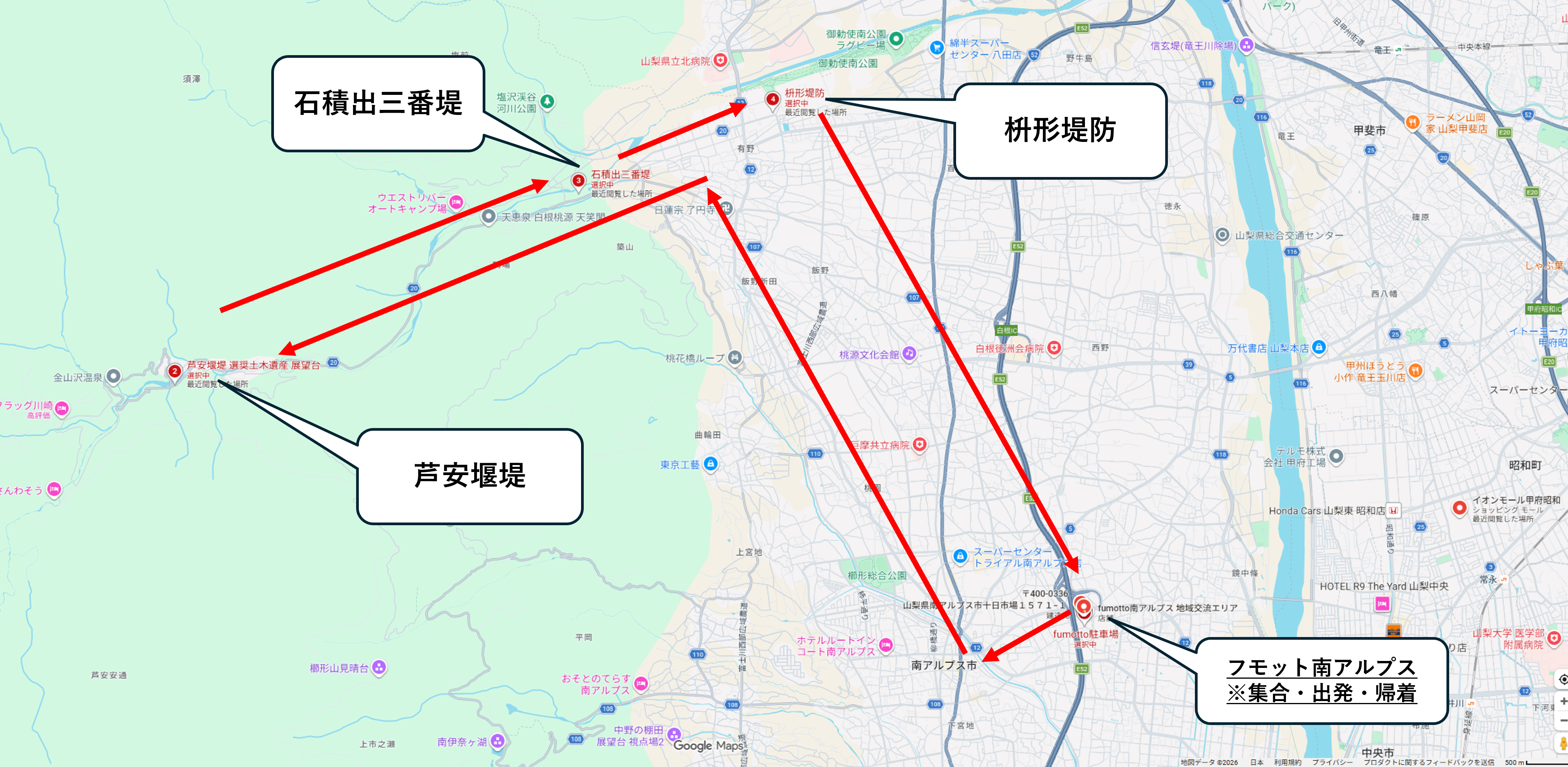 2 集合・解散場所:フモット南アルプス(南アルプス市十日市場1571-1)